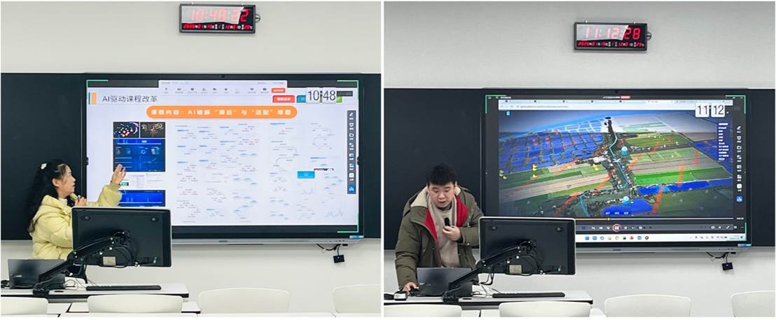 随后,秦曼老师分享了如何利用AI工具更新课程内容、设计“诗词里的中国”等思政项目,并构建“教学-科研”转化路径。付国伟老师则以与正大能科合作为例,介绍了共建教材、实验室及订单班,以真实产业项目驱动教学的具体实践。