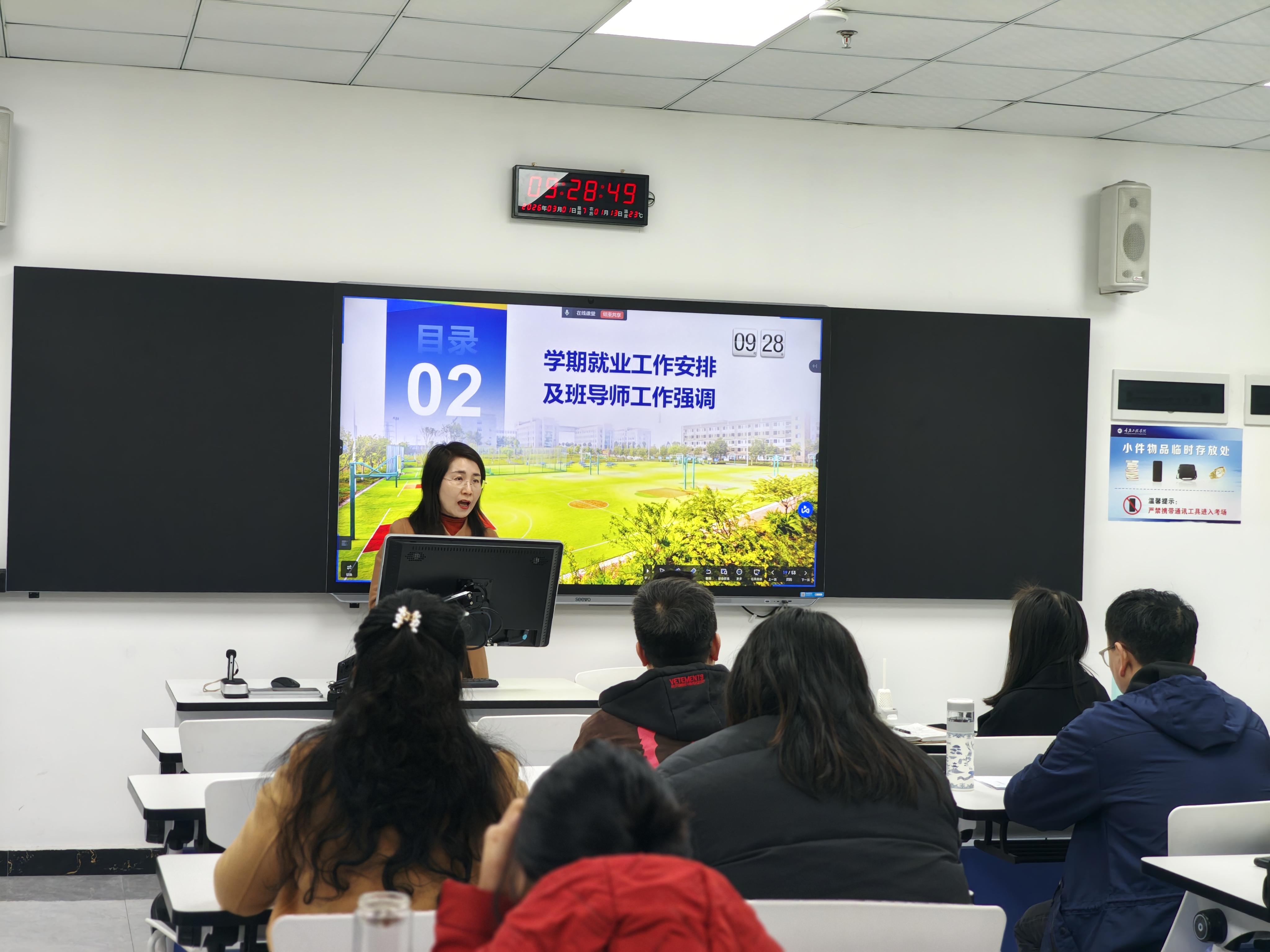 (文/图 数字孪生产业学院 陈斯琪)为做好2026年新学期工作部署,凝聚发展合力。数字孪生产业学院于2026年3月1日在7607教室召开2026年第1次教职工大会。本次会议由学院副院长张晓颖主持,学院全体教职工通过线上线下共同参加。
