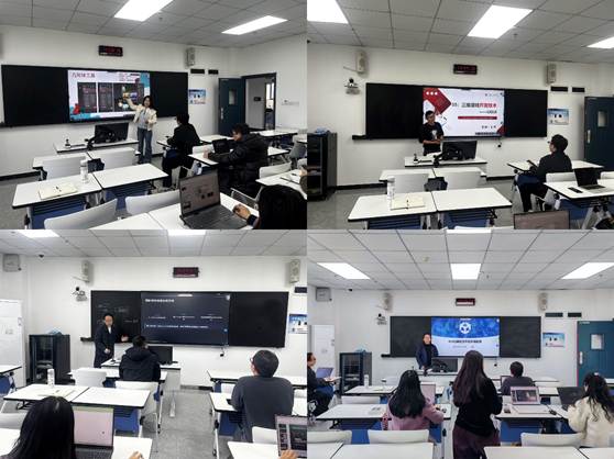在说课展示环节,各位教师各展风采,呈现了各具特色的教学创新实践。其中,秦曼老师在《三维建模技术》课程中,创新引入AI任务引擎,并在关键教学节点强化AI辅助应用,展现了智能化教学工具的深度融合;袁壮老师的《引擎应用与开发》课程设计精巧,以“问题导入—探究解决—回归反思”的闭环结构,构建了逻辑严密、首尾呼应的教学叙事;熊逍遥老师在《数字后期特效》课程中,践行“以赛促学、以赛促教”理念,将竞赛项目有机融入课程模块,同时重点展示了AI工具在数字后期制作中的创新应用。