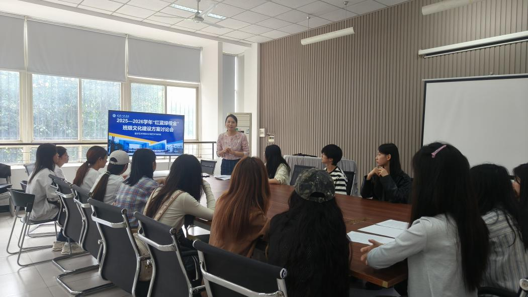 讨论会主要围绕以下三个方面展开:首先是“红蓝绿橙金”班级文化建设指南及考核指标解读。会议发放了纸质版建设指南与考核指标材料,帮助各班委准确把握“红蓝绿橙金”五大项目的具体标准与评价要求,为后续落实各项工作提供清晰依据。其次,“红蓝绿橙金”班级文化建设计划制定与推进。各班班委围绕建设内容展开集思广益,共同研讨形成班级建设计划,并明确在10月15日前完成计划制定。最后,寝室文化建设强调与落实。寝室作为学生生活与学习的重要空间,其文化建设需予以高度重视。杨老师强调,应从基础卫生管理入手,逐步提升至专业文化氛围的营造,推动寝室成为展现专业特色、促进学风建设的重要阵地。