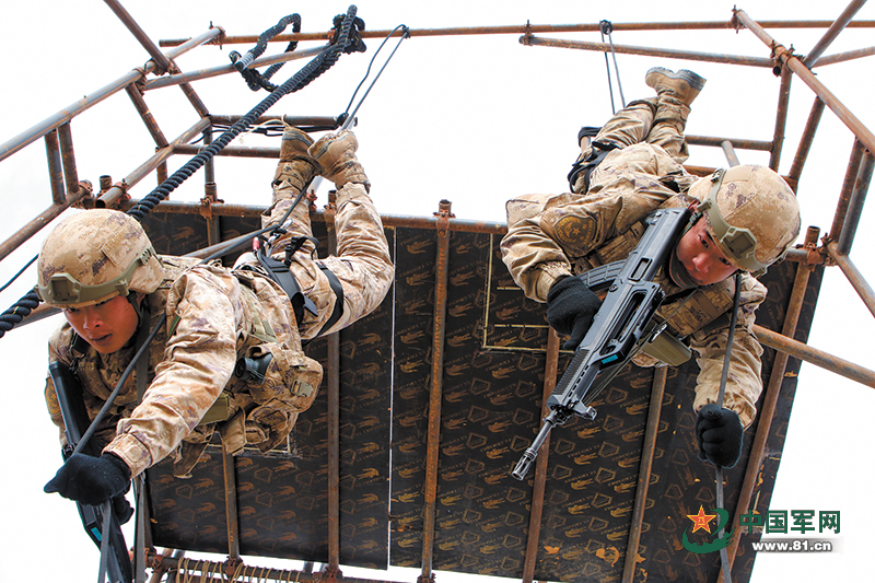 陆军某旅侦察连官兵在训练期间进行比武。李鹏举摄