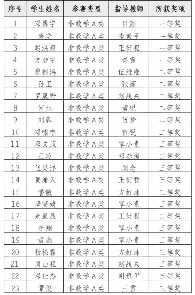 此次竞赛佳绩的取得,既是参赛学子勤奋钻研、奋勇争先的结果,也是学校育人体系成效的生动体现。未来,学校将继续深耕学科竞赛育人阵地,不断完善竞赛组织与培训机制,为学生搭建更多成长成才的高水平平台,激励广大青年学子在数学学科探索与实践中勇攀高峰、再创佳绩。