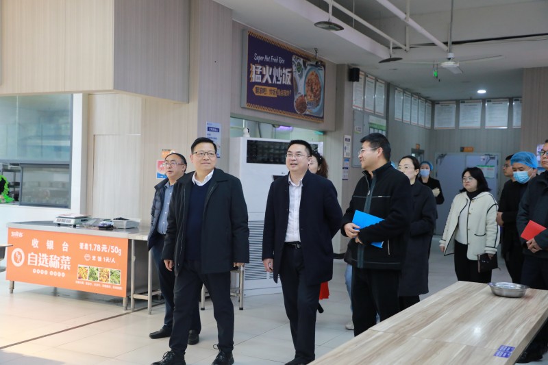 随后,余冠军一行移步师生食堂,实地查看食堂就餐环境、菜品供应、食品安全管理及价格公示等情况,仔细询问食材采购、加工制作、餐具消毒等全流程管控措施,对我校严把食品安全关、优化就餐服务、保障师生饮食健康的做法表示认可,同时建议学校持续细化食堂服务举措,进一步提升师生就餐体验。