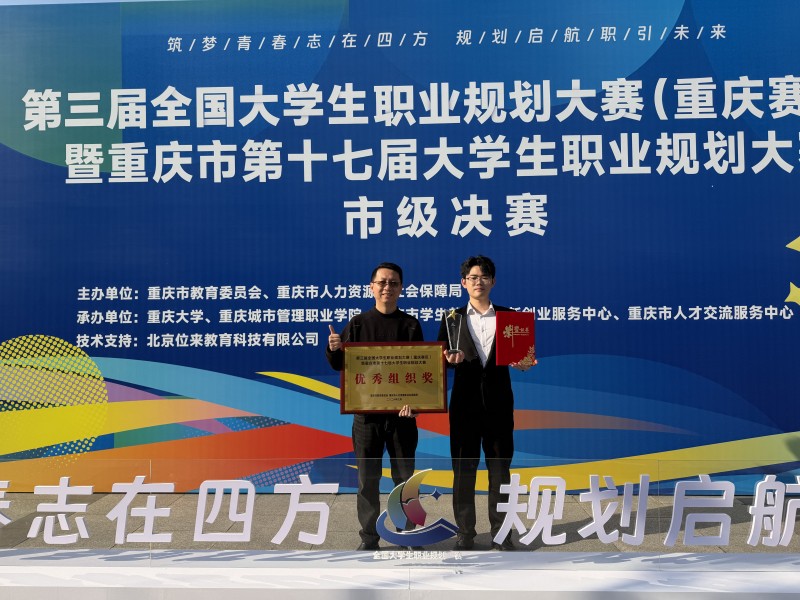 大数据与人工智能学院2023级大数据技术2班学生鲜惠山,身兼班长、辩论社负责人、学促负责人、大学生助理事务委员会助理、创新创业部门助理等多重职务,与团队并肩作战,斩获第三届全国大学生职业规划大赛重庆赛区金奖。这份亮眼成绩,既源于他自身的实干与拼搏,也得益于学校 “校企合作、产教融合”的办学特色、“学做一体、学以致用”的人才培养优势,精准契合学校地方性、应用型人才培养定位。