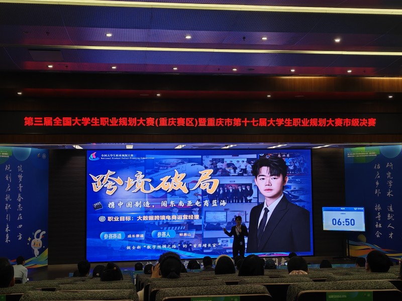 为突破困境,他独立策划直播拍卖活动,3天内完成方案策划、全流程运营与线上预热,最终实现单场2.5小时盈利2万+的突破。这段扎根真实市场的创业经历,让他对行业竞争、用户需求、运营逻辑有了透彻理解,也为备战全国大学生职业规划大赛筑牢底气。在重庆赛区赛场,他凭借扎实的实践积累、清晰的职业规划与沉稳的现场表现,一举摘得金奖,用实力印证“实干出真知”。