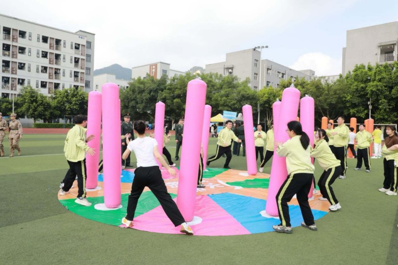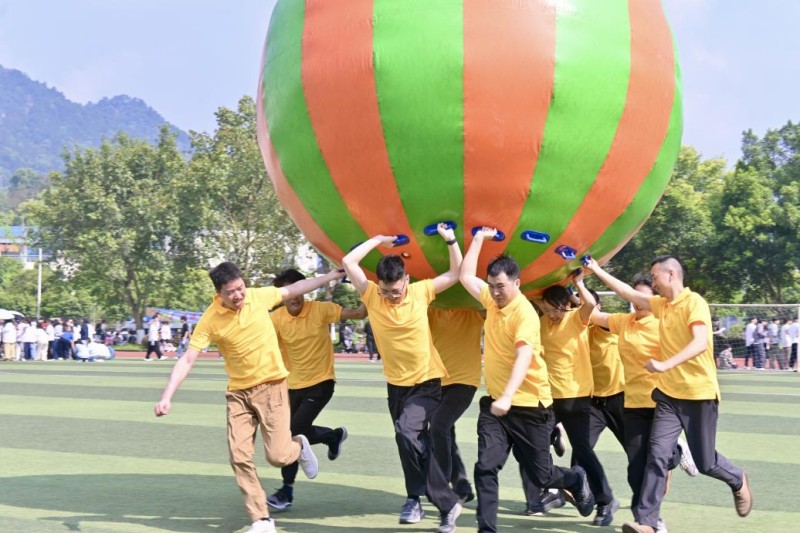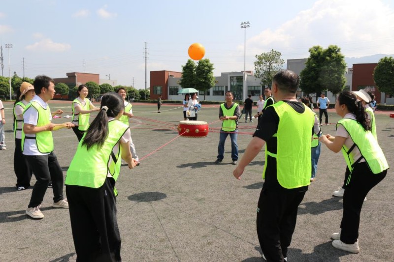 团队拓展趣味项目将运动会氛围推向高潮。两校区工会结合场地实际,分别设置了形式多样、寓教于乐的集体挑战项目。南泉校区的鸿运当头、不倒森林、一圈到底等项目考验团队协调与默契,双桥校区的击鼓颠球、幸福毛毛虫、迎面接力等项目则强调节奏统一与协作配合。各分工会精心组织、全员参与,教职工们在欢声笑语中释放压力、增进情谊,在默契配合中凝聚团队力量,生动诠释了“友谊第一,比赛第二”的运动精神。