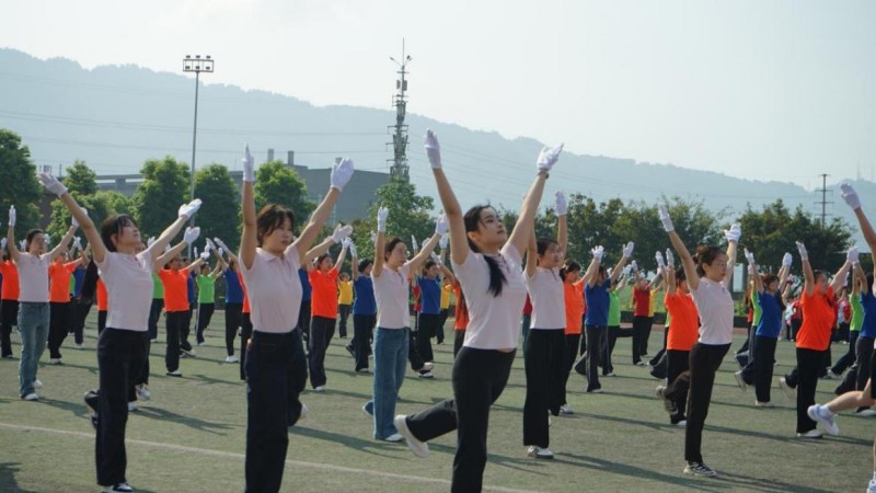 广播体操比赛率先拉开帷幕。各分工会参赛队伍服装统一、队列整齐,伴随着第九套广播体操的韵律,动作规范舒展、刚柔并济,展示了教职工昂扬向上的精神风貌与团队默契。