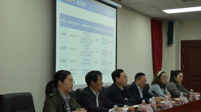 基础学院院长蒋国华代表学院班子从基本情况、发展状况、改革思路、工作建议四个方面,汇报了基础学院工作情况。会上,职能部门负责人就相关工作进行了交流指导。