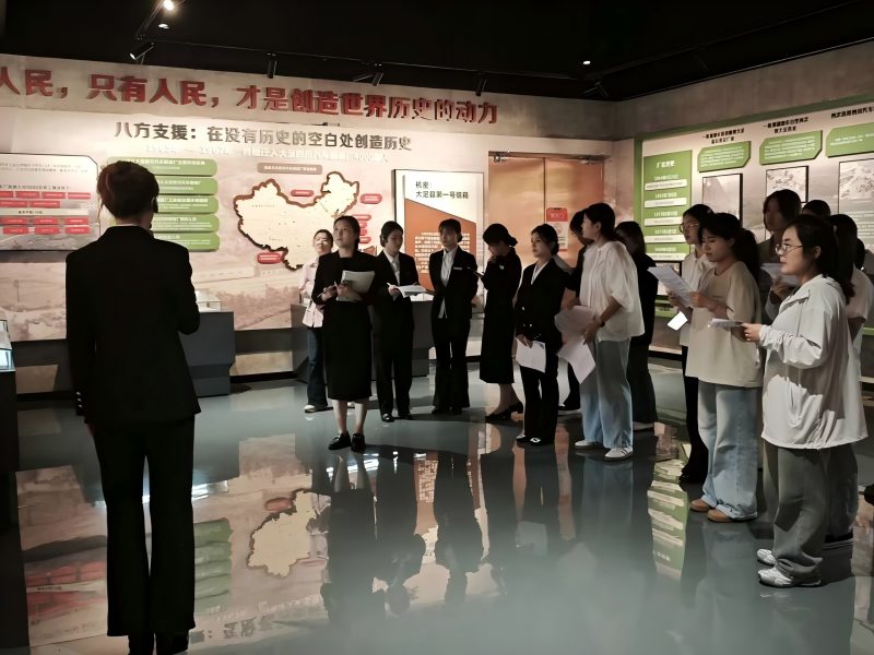本次考核以实战为导向,考核流程规范有序。考核伊始,团员以展区为单位自主开展自由练习,打磨讲解内容、调整仪态和走位、熟悉讲解节奏。随后,博物馆指导老师围绕内容掌握、语言表达、肢体仪态、临场表现等方面,开展全方位严格考核。同学们精神风貌良好,深情讲述三线建设故事与红岩文化内涵,展现了扎实训练成果。